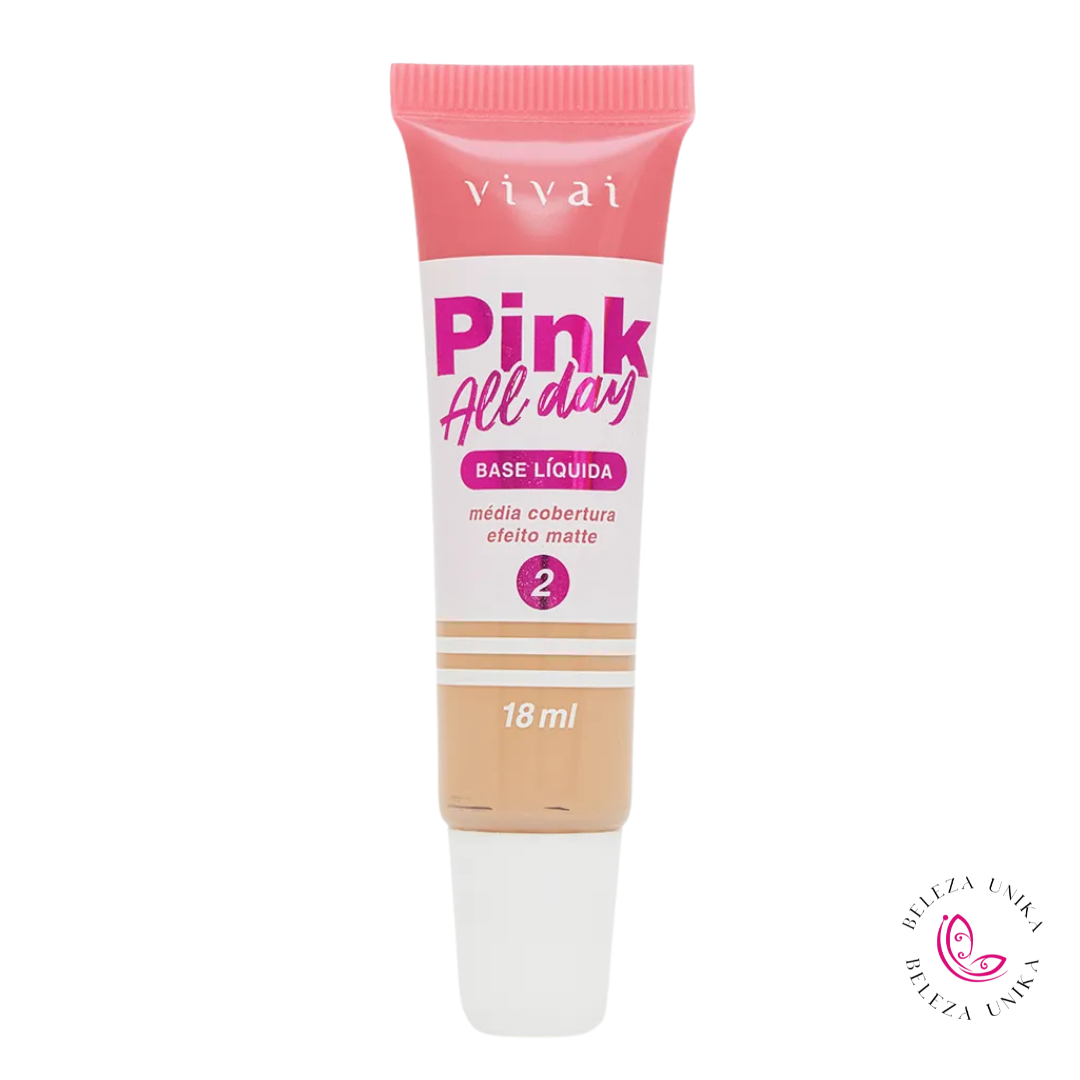 A Base Líquida Pink All Day da Vivai foi desenvolvida para acompanhar sua rotina do início ao fim do dia. Com cobertura média a alta e acabamento natural, ela uniformiza o tom da pele sem pesar, deixando um visual fresco e radiante. Sua fórmula leve e confortável permite construir camadas, garantindo uma pele impecável por horas.