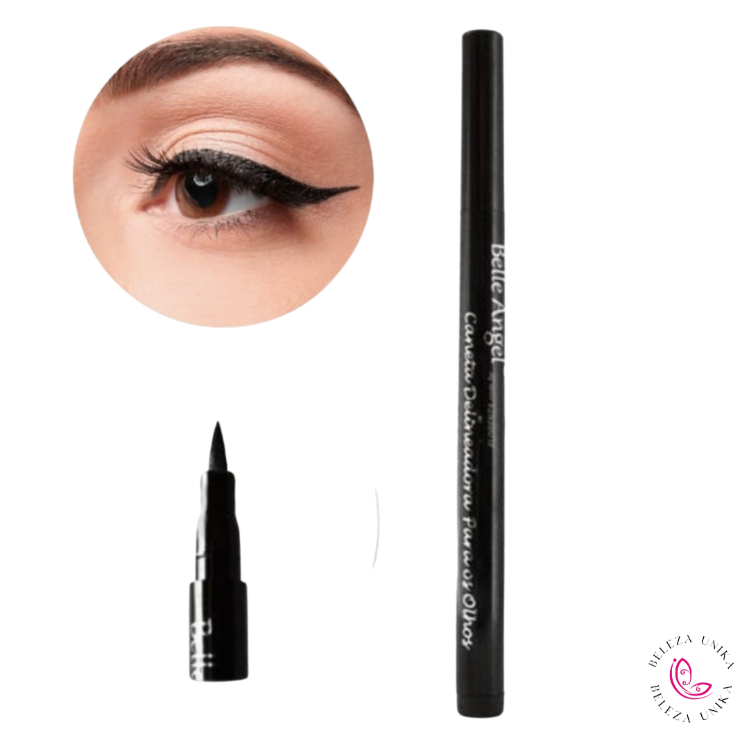 Caneta Delineadora da Belle Angel! Com ponta fina e firme, ela garante traços precisos e definidos, permitindo desde delineados delicados até os mais ousados. Sua fórmula de secagem rápida é resistente à água e de longa duração, ideal para manter o visual impecável ao longo do dia, sem borrar ou escorrer.