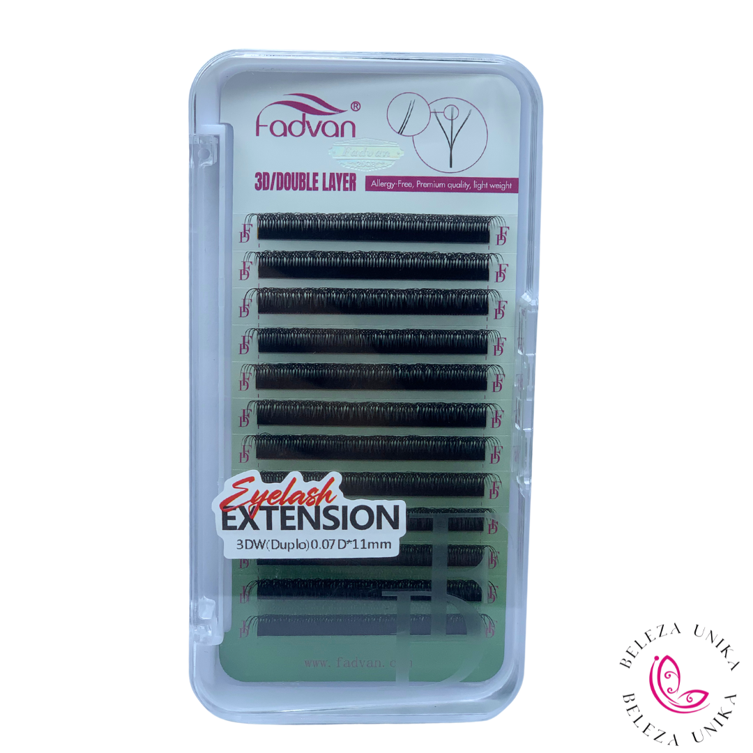 Os Cílios Fadvan 3DW (Duplo) são ideais para lash designers que desejam volume elegante, definição e leveza em um só fio. A tecnologia 3DW duplo proporciona maior preenchimento e efeito volumoso, mantendo um acabamento uniforme e natural.