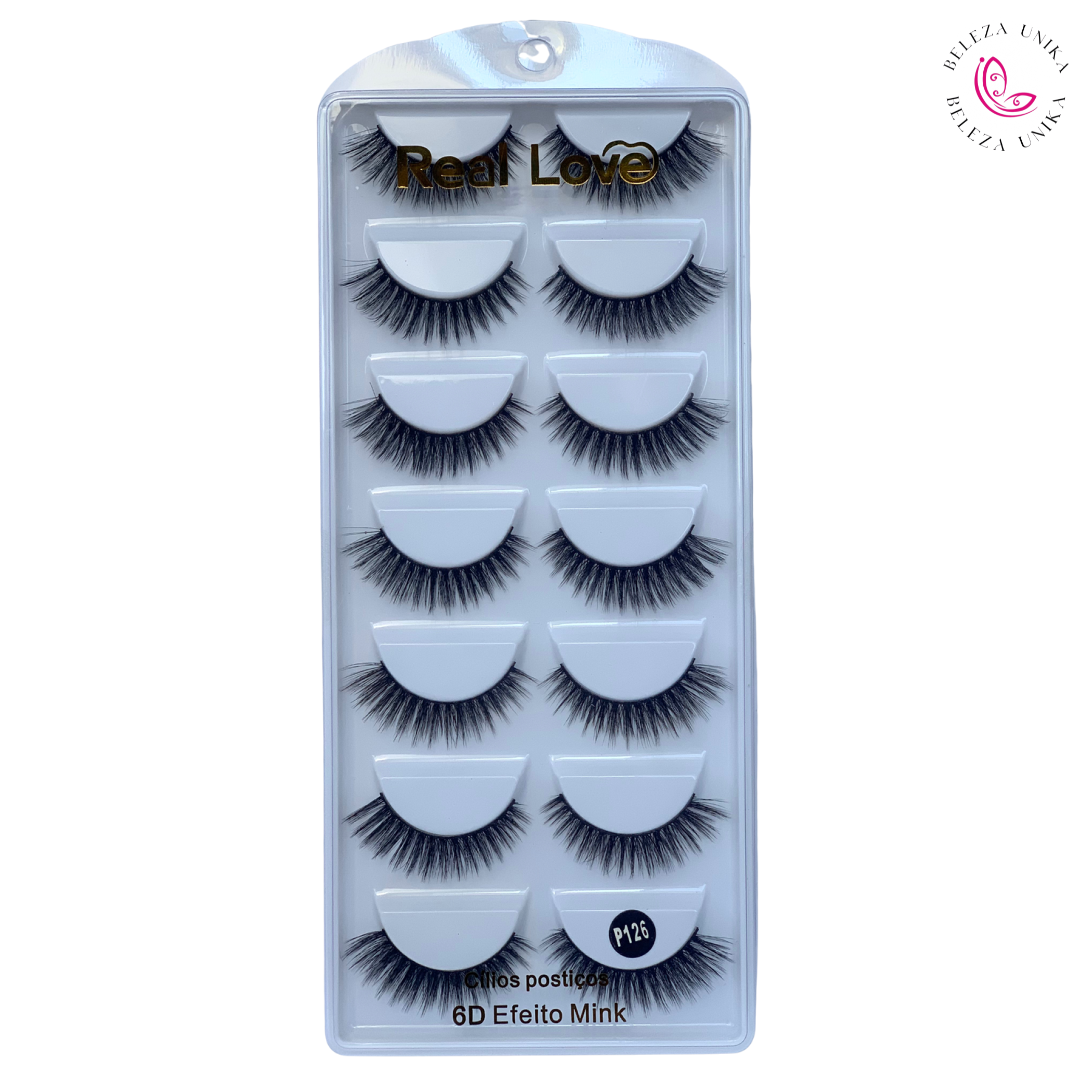 Cílios Postiços 6D Efeito Mink P126 7 Pares - Real Love