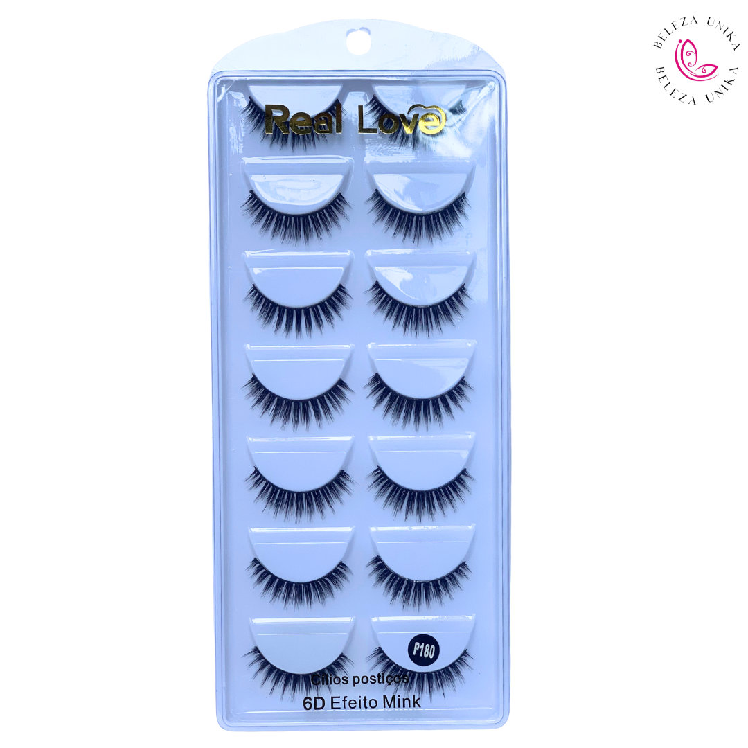 Cílios Postiços 6D Efeito Mink P180 7 Pares - Real Love