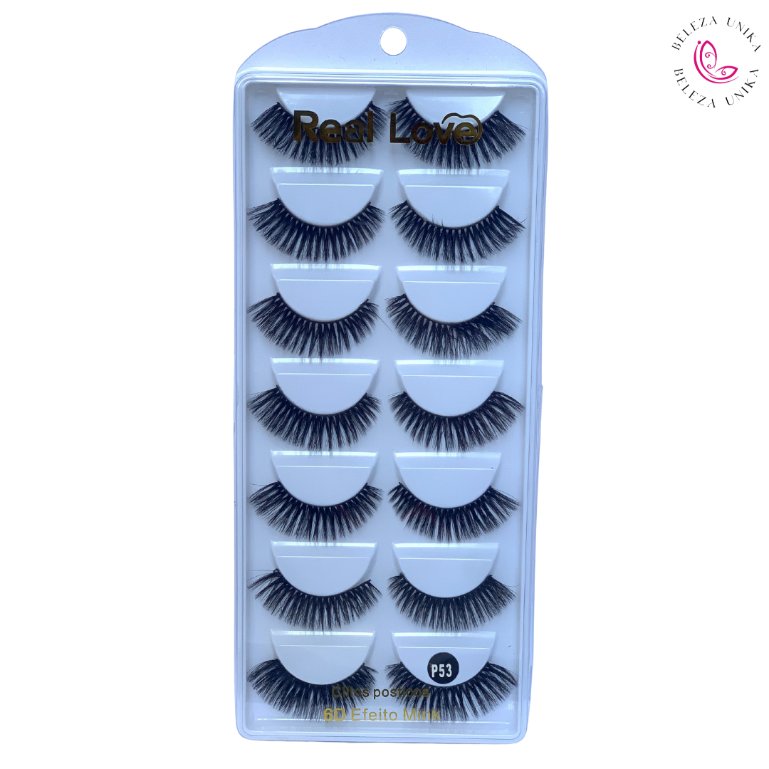 Cílios Postiços 6D Efeito Mink P53 7 Pares - Real Love