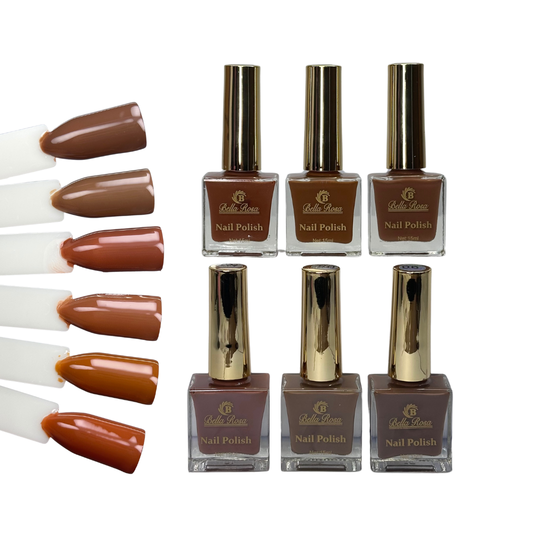 A Coleção 06 Tons Marrons Bella Rosa traz uma seleção perfeita de cores clássicas e elegantes para o dia a dia. São esmaltes tradicionais, de alta cobertura e longa duração, desenvolvidos para quem ama unhas impecáveis com cores versáteis e sofisticadas.