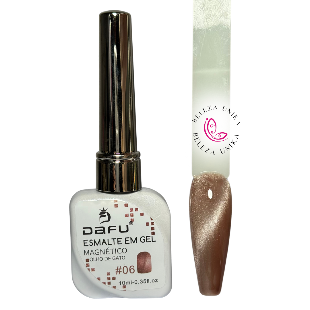 O Esmalte em Gel Magnético Dafu é ideal para criar o sofisticado efeito olho de gato, com brilho intenso e acabamento tridimensional. Sua fórmula possui partículas metálicas que reagem ao ímã, formando desenhos únicos e modernos nas unhas.