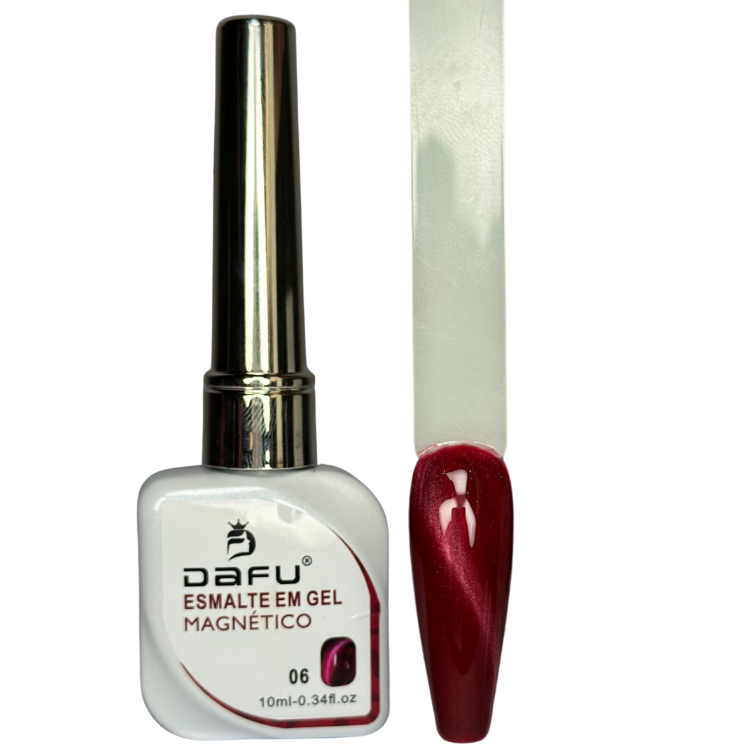 Destaque suas unhas com a intensidade e o charme dos tons vermelhos magnéticos da Dafu! Com partículas metálicas especiais, este esmalte cria efeitos 3D incríveis quando ativado com ímã, garantindo um visual moderno e marcante.