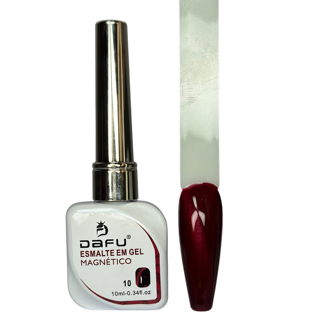 Destaque suas unhas com a intensidade e o charme dos tons vermelhos magnéticos da Dafu! Com partículas metálicas especiais, este esmalte cria efeitos 3D incríveis quando ativado com ímã, garantindo um visual moderno e marcante.