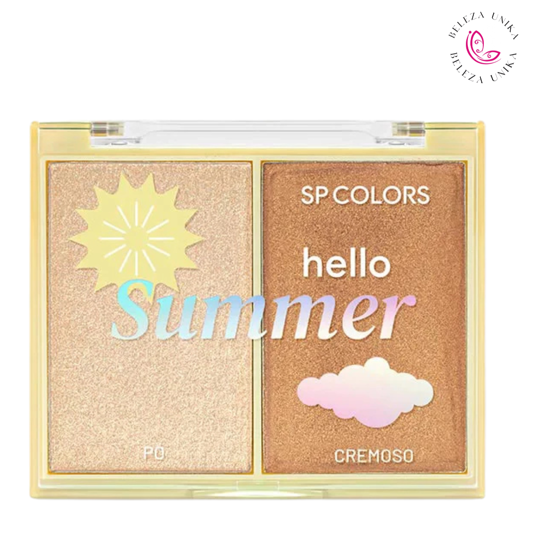 Iluminador Hello Autumn da SP Colors. Com textura ultrafina e toque aveludado, ele proporciona um glow luminoso e sofisticado, ideal para realçar os pontos altos do rosto com elegância e naturalidade.