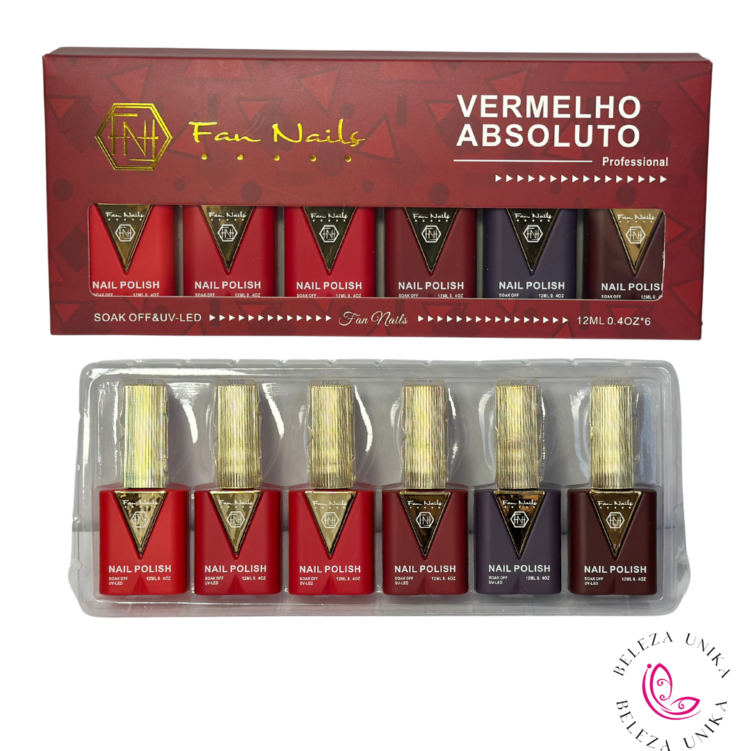 Kit Esmalte em Gel Vermelho Absoluto - Fan Nails