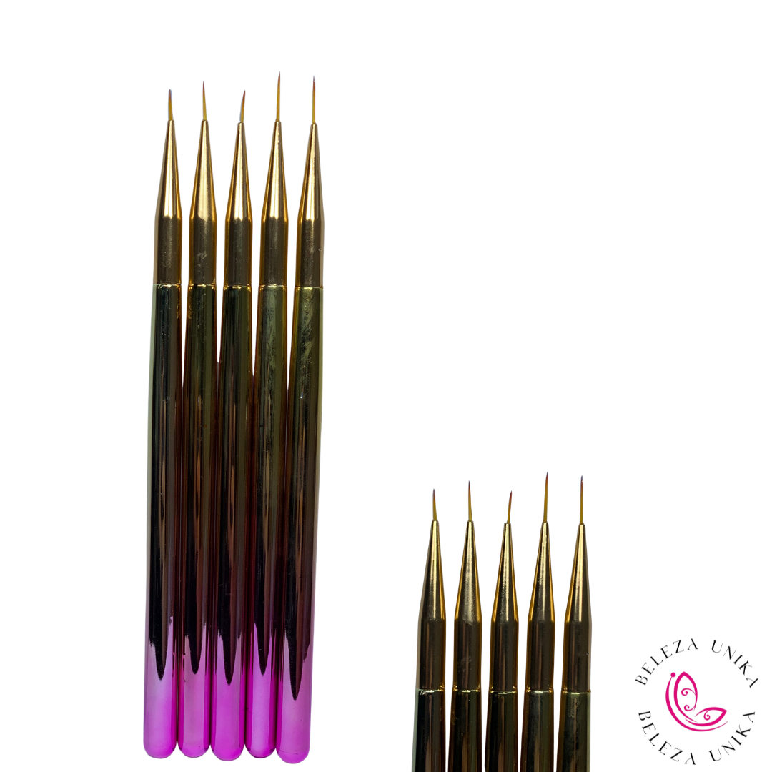 O Kit Pincel Fino com 5 Modelos é perfeito para quem busca precisão, versatilidade e criatividade na nail art. Com diferentes formatos e espessuras, permite criar desde traços delicados e detalhes minuciosos até desenhos mais elaborados, garantindo acabamento profissional.