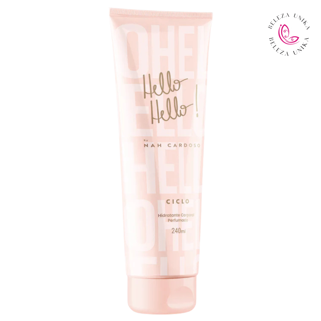 Com alta concentração de essência em sua fórmula, a Loção Hidratante Corporal Hello Hello Nah Cardoso by Ciclo traz uma combinação de notas deliciosas e sofisticadas para você chegar arrasando e conquistando elogios por aí!
