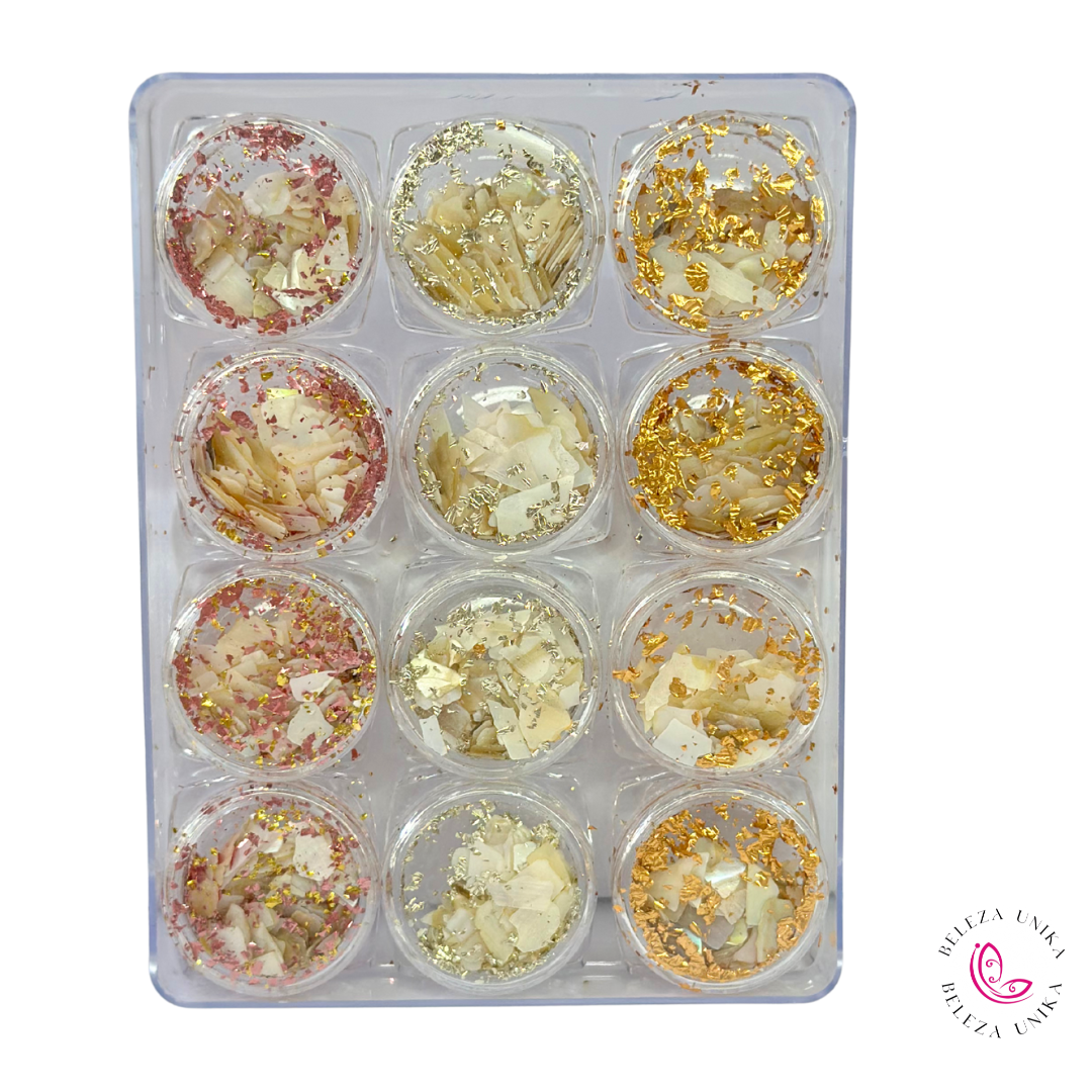 Madre pérola com folha de outro cartela 12 unidades