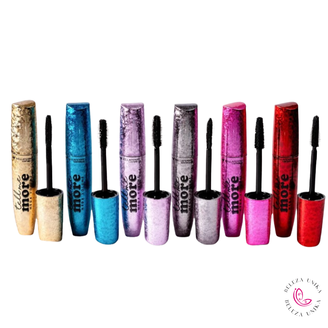 Conheça nossos novos rímeis: Tell Me More. Desenvolvidos com 6 modelos diferentes de aplicadores, você pode escolher entre cílios mega volumosos, curvados ou bem definidos, tudo com uma pigmentação intensa e de longa duração. Transforme seu olhar com "Tell Me More"!