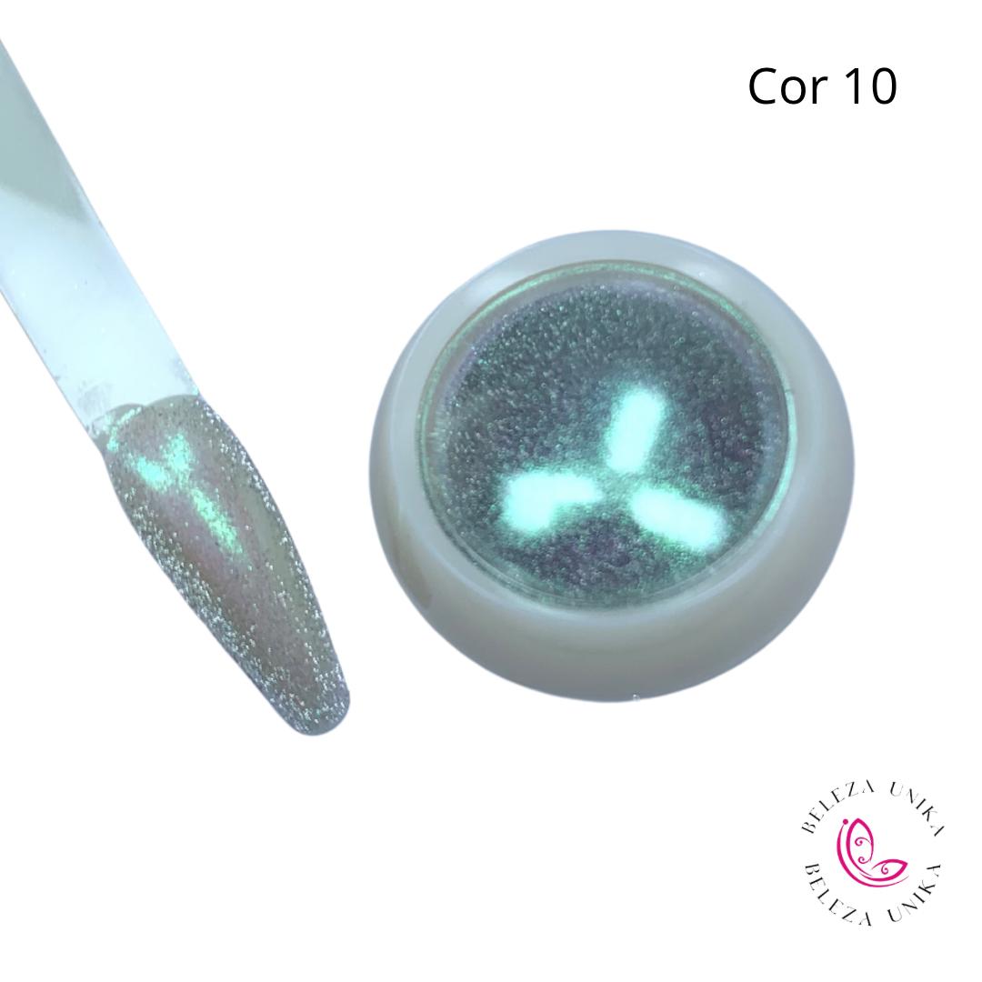 Pó ultrafino com efeito cromado espelhado, ideal para finalizações sofisticadas e nail art. A Cor #1 oferece brilho intenso e acabamento uniforme, garantindo resultado profissional com fácil aplicação.