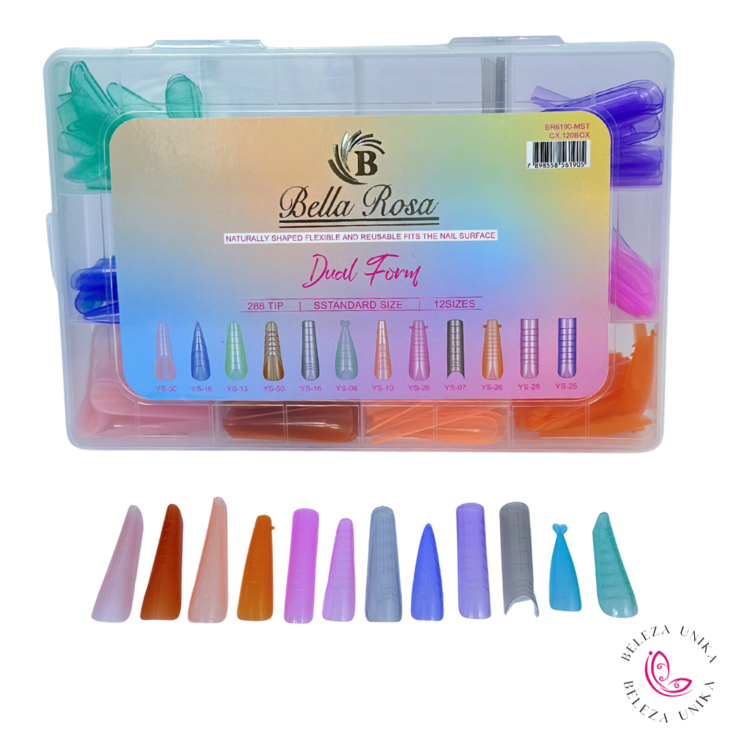 O Molde F1 Dual Form 12 Modelos – Bella Rosa é perfeito para quem deseja criar unhas em gel com formato profissional de forma prática e rápida. Com 12 modelos diferentes, ele oferece versatilidade para atender diversos tamanhos e formatos de unhas, garantindo acabamento uniforme e elegante.