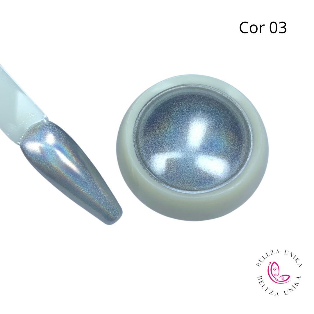 Pó ultrafino com efeito cromado espelhado, ideal para finalizações sofisticadas e nail art. A Cor #1 oferece brilho intenso e acabamento uniforme, garantindo resultado profissional com fácil aplicação.