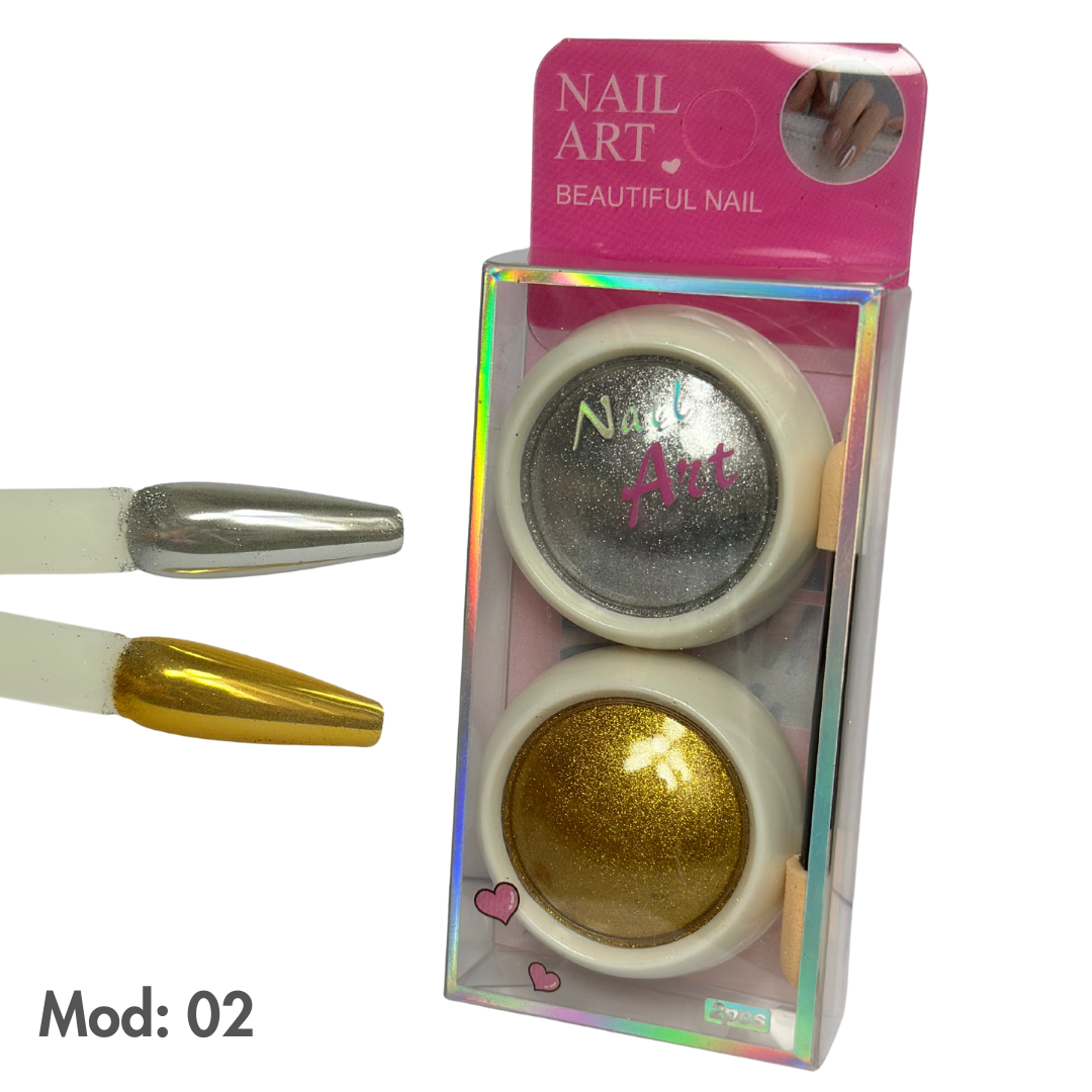 Cada kit contém 2 unidades de pó cromado com alta fixação e excelente rendimento, garantindo unhas perfeitas, elegantes e com aquele toque de luxo que as clientes amam.