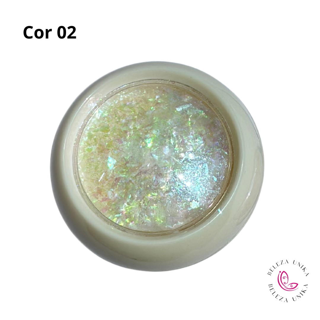 Nosso pó holográfico cria um brilho prismático que reflete diferentes cores conforme a luz, proporcionando um acabamento sofisticado e moderno.