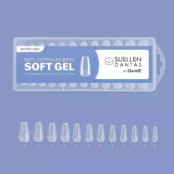 Desenvolvidas pela renomada nail designer Suellen Dantas, essas tips Soft Gel são perfeitas para alongamentos práticos, duradouros e com acabamento profissional. Com formato médio coffin, elas foram especialmente pensadas para unhas roídas ou mais curtas, oferecendo excelente aderência e cobertura natural.