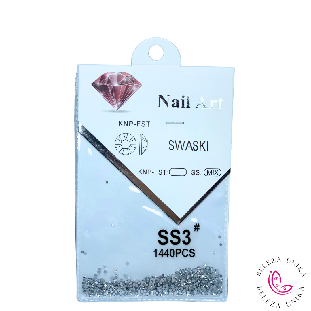 O Strass SS3 Prata é perfeito para quem busca delicadeza, brilho intenso e acabamento sofisticado em decorações de unhas. Seu tamanho pequeno permite criar detalhes precisos e elegantes, valorizando qualquer nail art com um toque refinado.