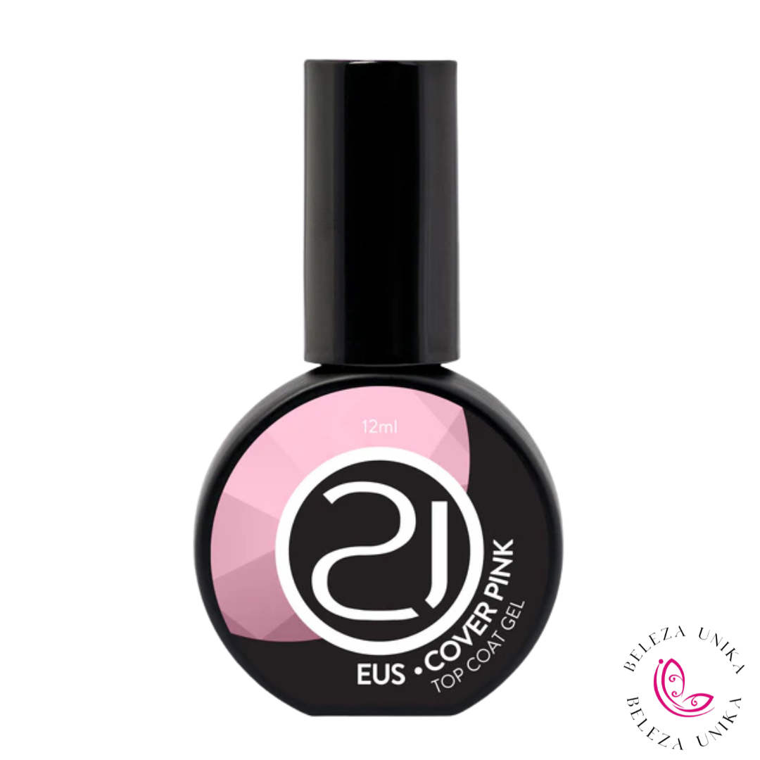 EUS é um top coat gel - cover pink, densidade alta sem capa de dispersão, ideal para construções, ele tem proteção UV para francesa e unhas claras não amarelar, também disponível em cores com aspecto saudável e incrível.